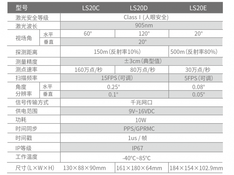 LS20D/E 固態 MEMS 激光雷達905nm