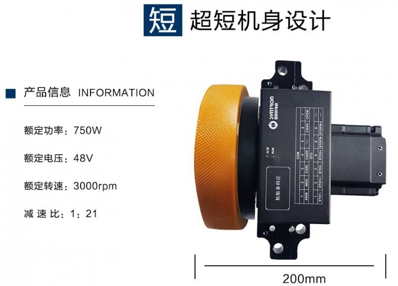 后背式伺服輪驅(qū)模組的驅(qū)動器安裝在電機后面,電機采用超短機身設(shè)計,同時安裝支架設(shè)計在輪邊減速器上,大大減少了對電機的徑向負載,延長了電機的使用壽命。