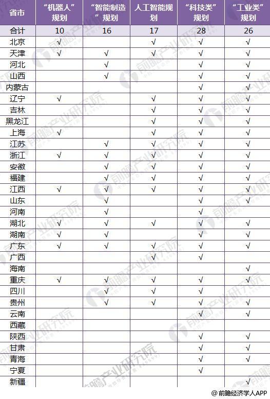 圖表6:各省市涉及到機器人的相關規劃匯總