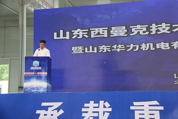 山東華力機(jī)電有限公司董事長(zhǎng)郭永旭先生發(fā)表致辭,對(duì)出席慶典的各位嘉賓表示熱烈的歡迎。郭董提到,山東西曼克技術(shù)有限公司在高書記、李縣長(zhǎng)等縣直各部的大力支持下終于在今天建成開業(yè)投產(chǎn),該項(xiàng)目第一期新建高標(biāo)準(zhǔn)廠房70000平方米,即將開建的第二期工程再建高標(biāo)準(zhǔn)“員工之家”樣式的廠房106000平方米,預(yù)計(jì)明年的今天建成投產(chǎn)。郭董對(duì)華力機(jī)電公司從2011年至今的發(fā)展與成就進(jìn)行了總結(jié),他指出,華力機(jī)電從銷售收入只有1億元,通過(guò)十年的拼搏到20年實(shí)現(xiàn)銷售收6. 8億元,產(chǎn)品也在不斷地更新?lián)Q代,新技術(shù)新產(chǎn)品不斷涌現(xiàn),并且得到了良好的市場(chǎng)應(yīng)用。郭董表示,隨著西曼克公司的新廠落成開業(yè),有決心有信心更有底氣,把機(jī)器人產(chǎn)業(yè)做強(qiáng)做大,用優(yōu)異的成績(jī),來(lái)回報(bào)各位領(lǐng)導(dǎo)、各位客戶、各位供應(yīng)商和各位朋友的大力支持。