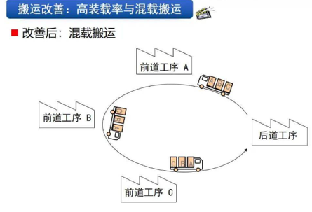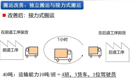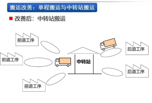 · 搬運改善后采取的混載搬運、接力式搬運、中轉(zhuǎn)站搬運均起到了大幅提高效率,降低人工成本的作用