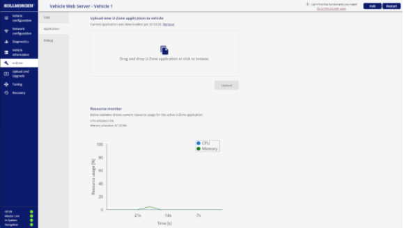portant; overflow-wrap: break-word !important;">02 我們還在新的車輛網頁界面里添加了U-Zone菜單,以便您上傳和監(jiān)控使用U-Zone的應用程序。您也可以通過資源監(jiān)視器查看U-Zone應用程序的CPU功率和內存使用情況。