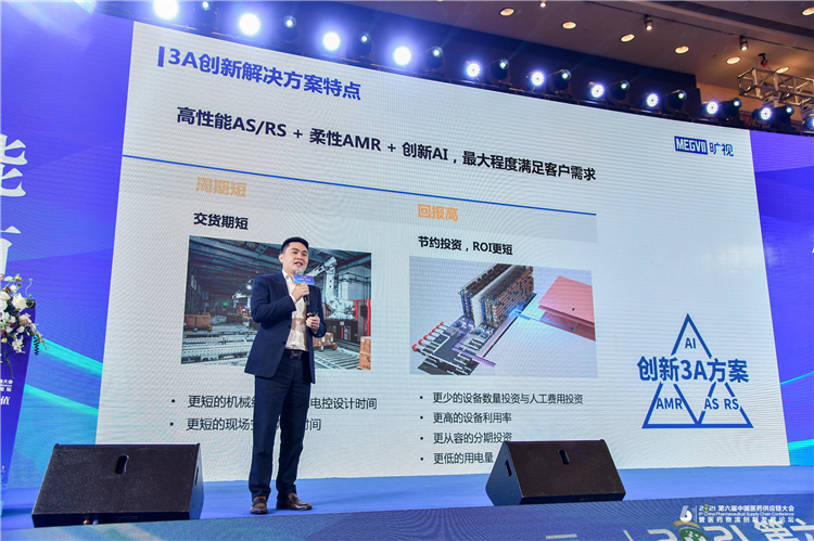 隨后,曠視作為企業(yè)代表,分享了醫(yī)藥物流最新解決方案,即國控廣州采用的3A智慧物流解決方案。具體來看,該方案通過智慧物流操作系統(tǒng)“曠視河圖“整體調(diào)度,將傳統(tǒng) AS/RS 自動(dòng)化物流系統(tǒng),與新興 AMR 柔性物流系統(tǒng)接口打通、有機(jī)集成,同時(shí)憑借曠視領(lǐng)先的底層 AI 技術(shù),將視覺感知和算法賦能預(yù)約收貨、單據(jù)識(shí)別、紙箱信息識(shí)別、存儲(chǔ)、復(fù)核、播種、裝車等醫(yī)藥物流的全流程環(huán)節(jié),切實(shí)幫助客戶降本增效、簡化管理。
