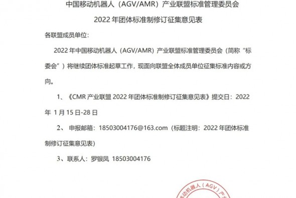 關(guān)于2022年工業(yè)應(yīng)用移動(dòng)機(jī)器人團(tuán)體標(biāo)準(zhǔn)立項(xiàng)的公示