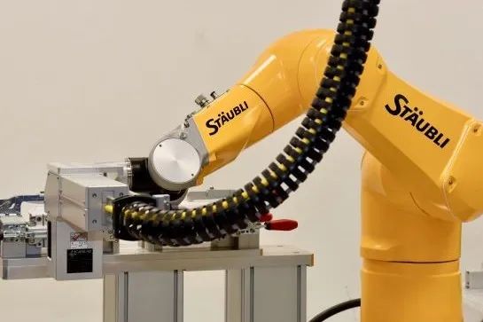 在將鋰離子電池單體插入前,激光焊接單元中的過程都是全自動化的。插入后,操作員開啟加工,史陶比爾TX2-90開始靈活、精確地焊接電池。這臺六軸機器人的任務正是:以極高精度和高動態性能,準確定位加工頭。