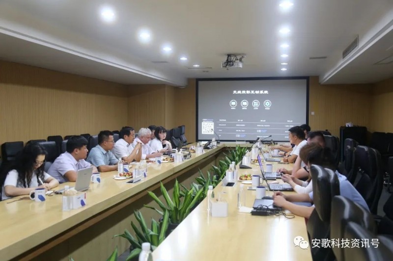 安歌科技集團董事長兼CEO姜躍君先生及各部門負責人共同接待了房教授一行,帶領(lǐng)參觀了公司展廳及生產(chǎn)基地,并詳細介紹了安歌科技的發(fā)展歷程、核心產(chǎn)品、研發(fā)團隊、集團情況等。雙方針對整體規(guī)劃方案的提升、從集控到分控的輸送系統(tǒng)、多穿系統(tǒng)的研發(fā)、戰(zhàn)略市場的開發(fā)等做了深入的交流和探討,并正式開啟戰(zhàn)略合作。