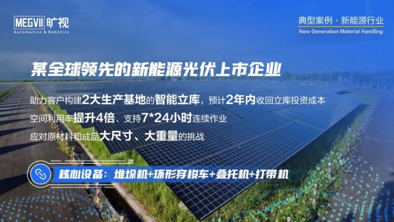 曠視看到,無論是鋰電原材料、動(dòng)力電池還是光伏等新能源企業(yè)的生產(chǎn)設(shè)備的自動(dòng)化改造已經(jīng)達(dá)到較高水平,企業(yè)通過工藝管理、工藝改進(jìn)和精益制造實(shí)現(xiàn)了很好的效益提升;目前正在加緊部署物流機(jī)器人和智能立庫系統(tǒng),對(duì)物流環(huán)節(jié)數(shù)智化升級(jí),以進(jìn)一步提升工藝管理和交付能力,實(shí)現(xiàn)降本增效。