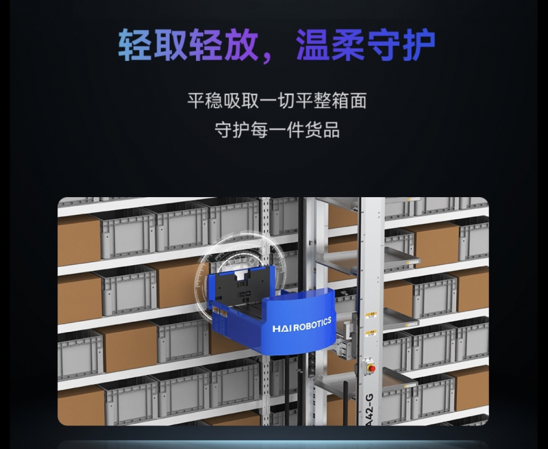 另外,這次吸盤式ACR將配合海柔創(chuàng)新即將發(fā)布的軟硬件新品,形成一整套場(chǎng)景化物流倉(cāng)儲(chǔ)解決方案,為智能倉(cāng)儲(chǔ)再添無限可能。
