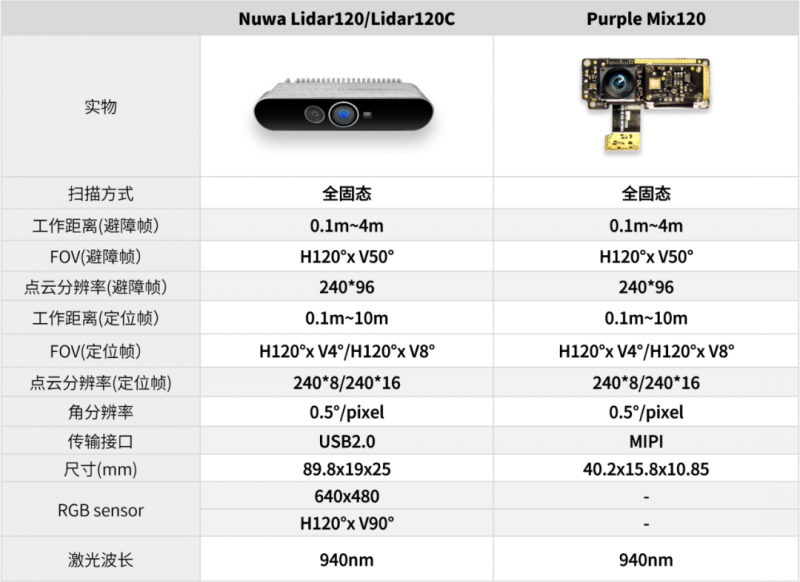 產(chǎn)品將重點針對機器人應(yīng)用領(lǐng)域,有效解決導(dǎo)航、避障功能模塊分離造成的機器人整機產(chǎn)品形態(tài)設(shè)計困難、傳感模塊多而成本高的問題。此外,傳統(tǒng)的LDS、單點/多點dToF線掃導(dǎo)航模塊都需要采用機械式或半固態(tài)的設(shè)計,可靠性易受影響,而Nuwa-Lidar120和PurpleMix120都采用了全固態(tài)的方案,產(chǎn)品內(nèi)部沒有任何的機械振動和微機械振動,是針對產(chǎn)品可靠性和壽命優(yōu)化最理想的方案之一。