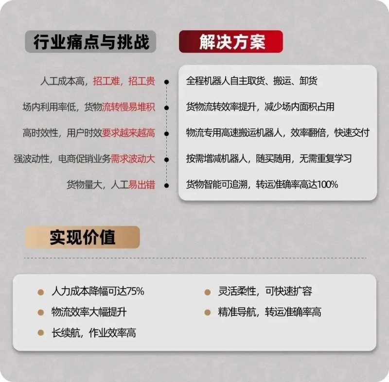 截至目前,雙方合作已經從湖州擴大到無錫、武漢、南通、廈門等多個城市。一批又一批的搬馬機器人助力跨越速運集團智能化物流轉型實現整體物流效率的再跨越,并且峰值期間可實現51%-75%的人工成本降幅。