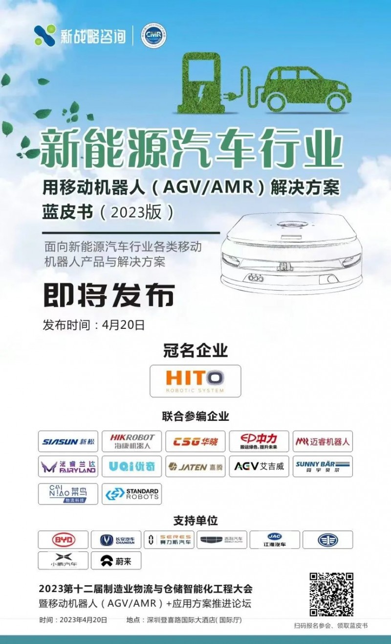 4月20日在“2023第十二屆制造業物流與倉儲智能化工程大會”上,《新能源汽車行業用移動機器人(AGV/AMR)解決方案藍皮書(2023版)》將正式發布!