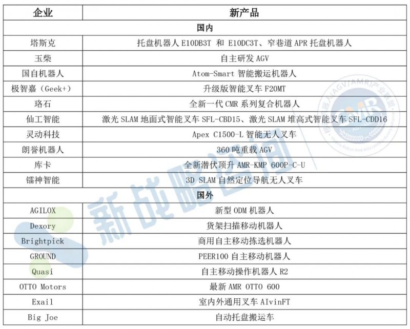 圖表:一季度國內外AGV/AMR企業新產品(根據公開信息整理,如有遺漏,請指正!)