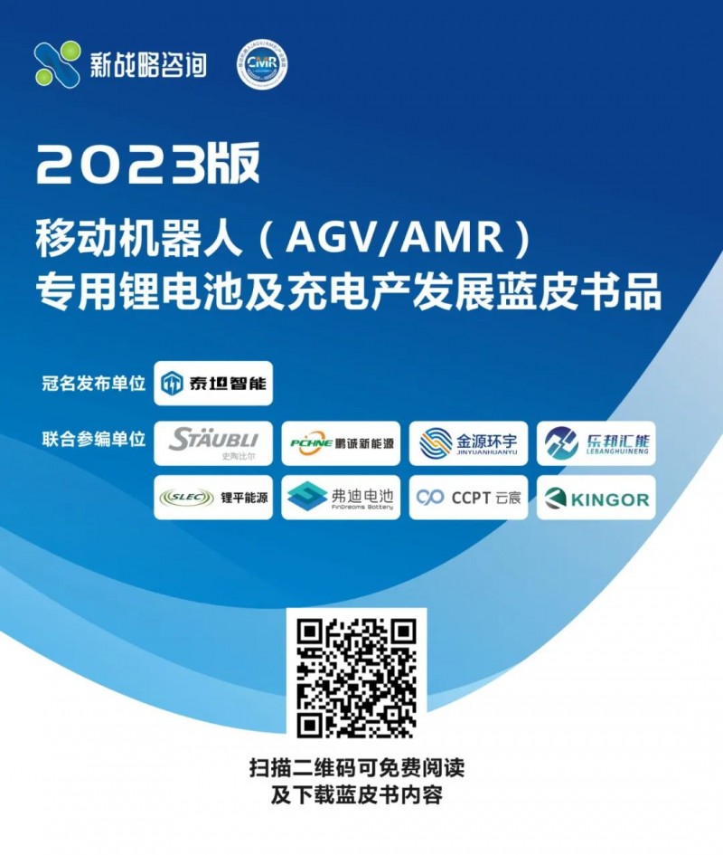 《移動機器人(AGV/AMR)專用鋰電池及充電產品發展藍皮書(2023版)》已于近期正式發布,該藍皮書由CMR產業聯盟、新戰略移動機器人產業研究所主編。廣東泰坦智能動力有限公司冠名發布,史陶比爾(杭州)精密機械電子有限公司、深圳市鵬誠新能源科技有限公司、河南金源環宇儲能技術有限公司、樂邦(天津)新能源科技有限公司、上海鋰平能源科技有限公司、深圳比亞迪鋰電池有限公司/弗迪電池、重慶云宸新能源科技有限公司、杭州凱歌新能源科技有限公司等企業聯合參編。