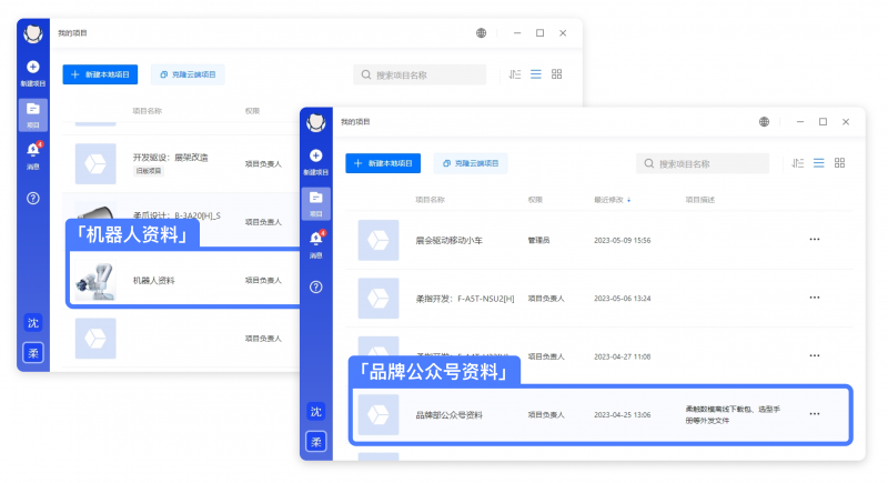 比如我們在追光幾何建了「品牌公眾號資料」項目,用于客戶外發文件(數模離線下載包和選型手冊)的版本管理,同時其他同事都能夠通過這個項目,拿到最新的產品設計圖分享給客戶。