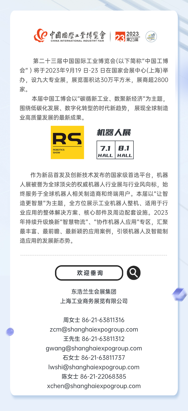 中國(guó)工博會(huì)機(jī)器人展作為推動(dòng)機(jī)器人產(chǎn)業(yè)和技術(shù)交流合作的平臺(tái),始終以最權(quán)威視角展現(xiàn)機(jī)器人行業(yè)發(fā)展全路徑,助推政、產(chǎn)、學(xué)、研、金、服、用融合,為實(shí)現(xiàn)機(jī)器人產(chǎn)業(yè)高質(zhì)量發(fā)展持續(xù)注入新動(dòng)能,與機(jī)器人技術(shù)的發(fā)展攜手同行共創(chuàng)全人類(lèi)的美好未來(lái)。