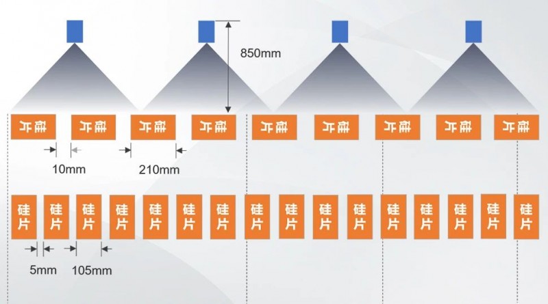 來料方式:210mm*105mm硅片,橫向排列9個,豎向排列16個
