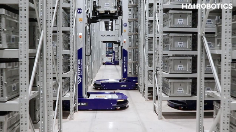 HaiPick System 3方案中的勾取式ACR,應(yīng)用了海柔獨(dú)家首創(chuàng)的勾取式貨叉取放貨技術(shù),有效實(shí)現(xiàn)存儲(chǔ)密度、取放貨效率的大幅提升。同時(shí),該方案中海柔自研的極速潛伏式頂升機(jī)器人K50也是一大亮點(diǎn),K50機(jī)身搭載高性能驅(qū)動(dòng)電機(jī),應(yīng)用海柔多年自研的控制算法和定位算法,直行速度高達(dá)4m/s,靈巧的車身尺寸完美適配極致的箱間距要求,機(jī)身配置滿足CE/NRTL認(rèn)證標(biāo)準(zhǔn),選用了可循環(huán)充電1萬(wàn)次的鈦酸鋰電池,電池使用壽命高達(dá)10年。
