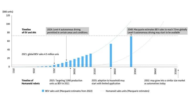 人形機器人滲透率曲線將與純電動汽車相似。