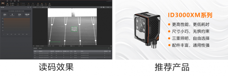 需求:電池片串焊排版后,匯流條處會貼附標簽碼用于質量追溯,需要透過一層毛玻璃,及一層EVA膠膜讀取,讀碼后實現至MES系統對接。