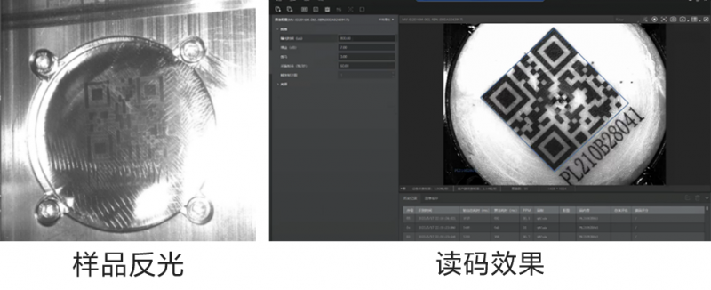 需求:電池片的質量追溯,讀取電池片上絲印的二維碼,由于絲印痕跡較淺肉眼基本不可見,讀碼后上傳MES系統實現每個電池片的追溯管理。