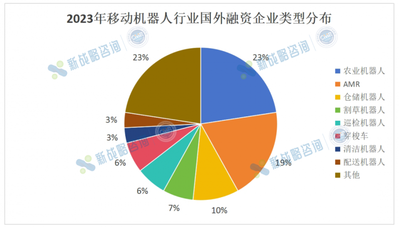 從融資企業類型看,以農業機器人為核心產品的企業最受資本青睞,占比達到23%。其次,AMR、倉儲機器人、穿梭車等產品也是資本關注的重點。在產品層面,國外資本與國內資本關注度接近。