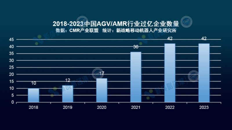 圖表:2018-2023中國(guó)AGV/AMR行業(yè)過億企業(yè)數(shù)量