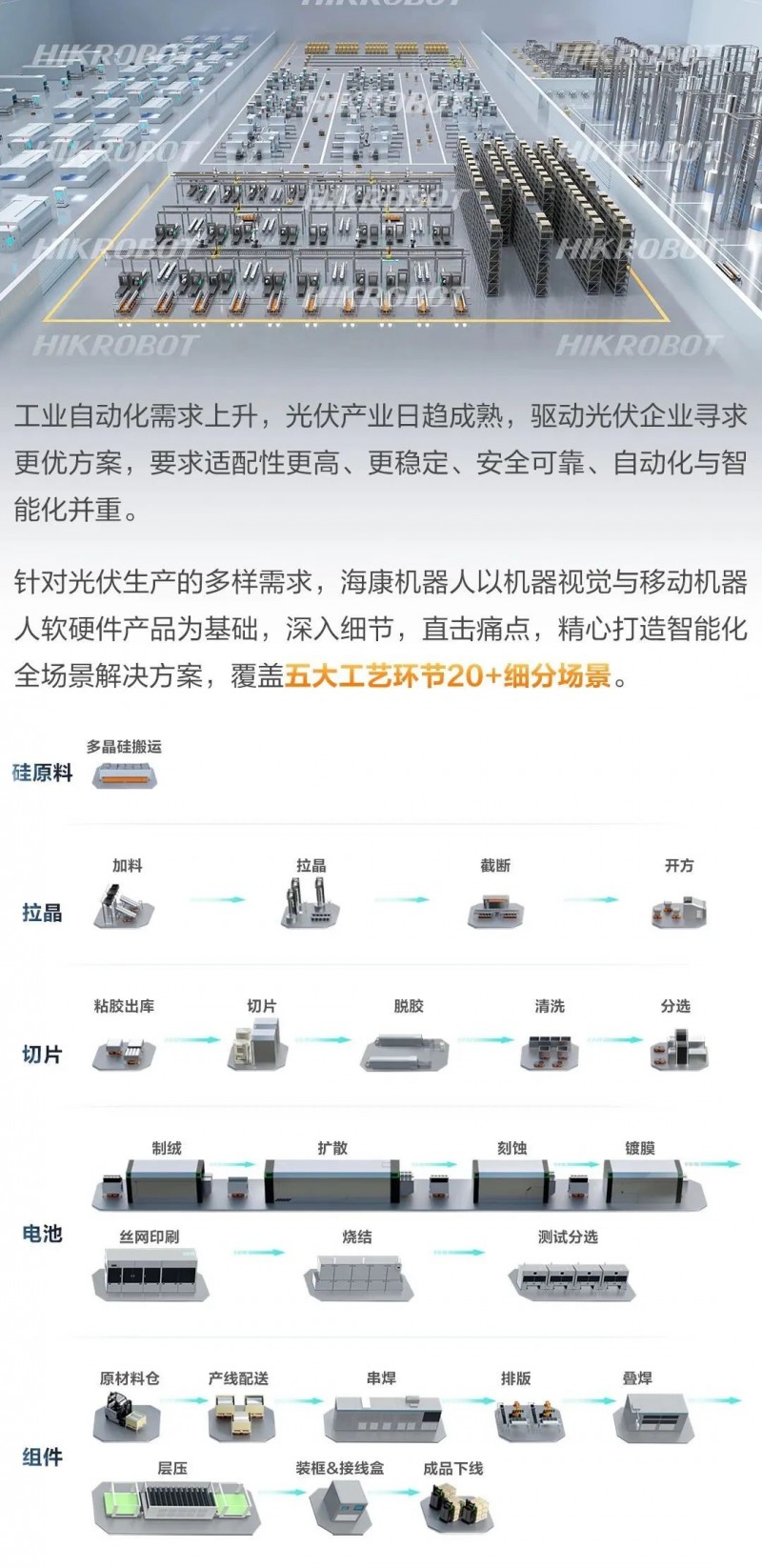 海康機器人深耕光伏行業,在解決方案落地應用過程中積累了豐富的經驗。為更好地滿足客戶多元化需求,??禉C器人一方面對原有機器視覺和移動機器人軟硬件產品進行迭代升級,一方面持續定制化開發新產品,不斷豐富產品矩陣,提供一站式服務。
