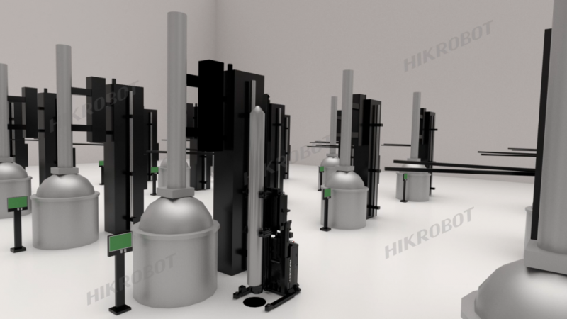 在某光伏項目新建廠房中,一邊建廠,一邊安裝調試,安裝一片區域爐臺,便上線一片區域AMR。投入潛伏AMR和重載AMR,結合RCS機器人控制系統,實現上料實時追溯和成品晶棒實時轉運。