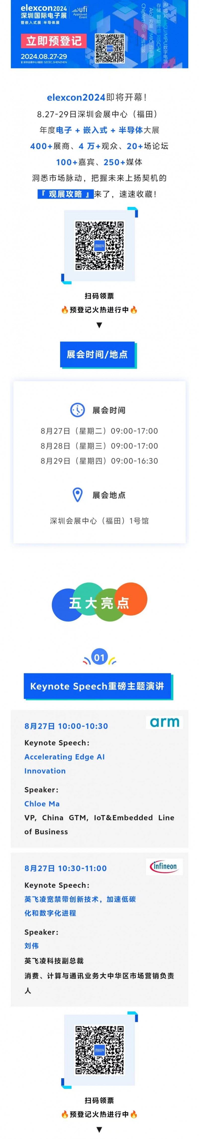 觀展攻略 | elexcon2024深圳國際電子展+嵌入式展+半導體展即將開幕,8.27-29日與您相約深圳會展中心(福田)