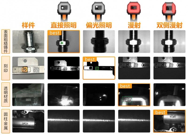 IDH9000集成直接照明、偏光照明、漫射、雙側(cè)漫射四種照明方式,打破打碼材質(zhì)、工藝、外形、表面處理等限制,準確識別傳統(tǒng)設(shè)備無法識讀的目標,輕松面對各類材質(zhì)和場景。