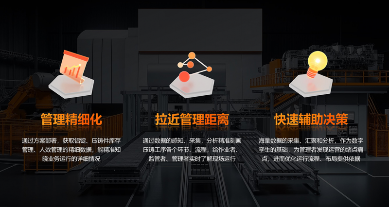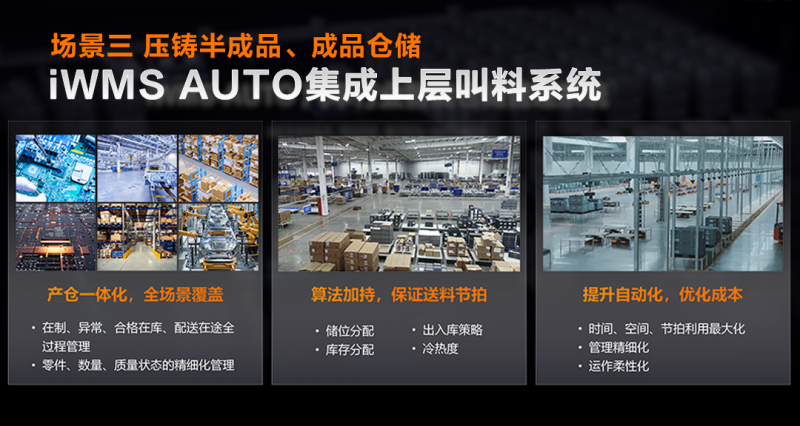 該方案把一體化壓鑄按照物料形態(tài)和工序分成三個場景,鋁錠收貨存儲及上線;壓鑄、機(jī)加、裝配工位間半成品上下料及轉(zhuǎn)運(yùn);壓鑄半成品、成品倉儲三個場景,實(shí)現(xiàn)運(yùn)營精細(xì)化管理、拉進(jìn)管理者距離、為優(yōu)化作業(yè)流程提供輔助決策依據(jù)。