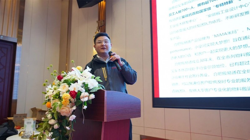 在酒店宣講環節,合肥搬易通廣州營銷服務中心負責人侯杰介紹了公司的企業規模、發展歷程、全系列物料搬運設備以及超窄通道產品,并表明未來團隊將不斷深化對市場動態與客戶需求的洞察,提升服務質量,力求全方位滿足客戶物料搬運需求。
