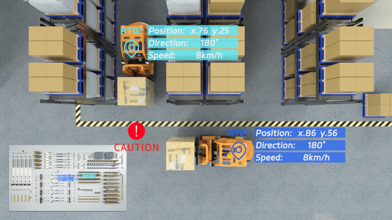 系統(tǒng)不僅提供實時定位支持,還具備車輛速度檢測功能。通過分析叉車的行駛速度和當前位置,系統(tǒng)能夠在危險區(qū)域內(nèi)對超速行為進行實時提醒,同時提示駕駛員周圍的車輛及潛在危險,有效提升操作安全性并降低事故風(fēng)險。此外,系統(tǒng)設(shè)置了自動化禁行區(qū)域(no-go zones),提醒駕駛員避開高風(fēng)險區(qū)域,進一步減少了叉車碰撞事故的發(fā)生概率。