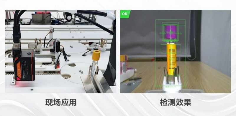 應(yīng)用亮點(diǎn):能夠穩(wěn)定檢測(cè)試管有無(wú)及試管帽顏色,同時(shí)進(jìn)行多個(gè)內(nèi)容的檢測(cè),具有高識(shí)別率。