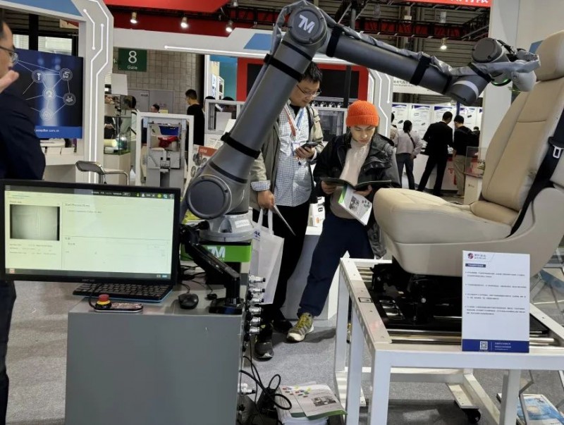 在慕尼黑電子生產(chǎn)設(shè)備展(Productronica China)的現(xiàn)場(chǎng),達(dá)明機(jī)器人合作伙伴所展示的汽車(chē)座椅外觀檢測(cè)應(yīng)用,充分彰顯了視覺(jué)飛拍技術(shù)在外觀瑕疵檢測(cè)方面的優(yōu)勢(shì)。