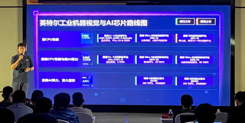 Intel中國產品經理高暢則展示了Intel在機器視覺與邊緣AI領域的軟硬件新產品,通過多個行業案例展現出Intel軟硬件一體化賦能智慧工廠的全棧方案。