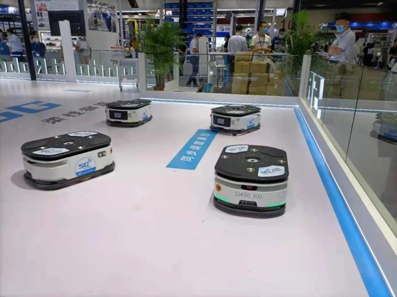斯坦德此次主要展示了其開發的基于5G邊緣智能的AMR解決方案,現場演示了5G私網下的AMR協同調度、智能上下料、自動出入庫。