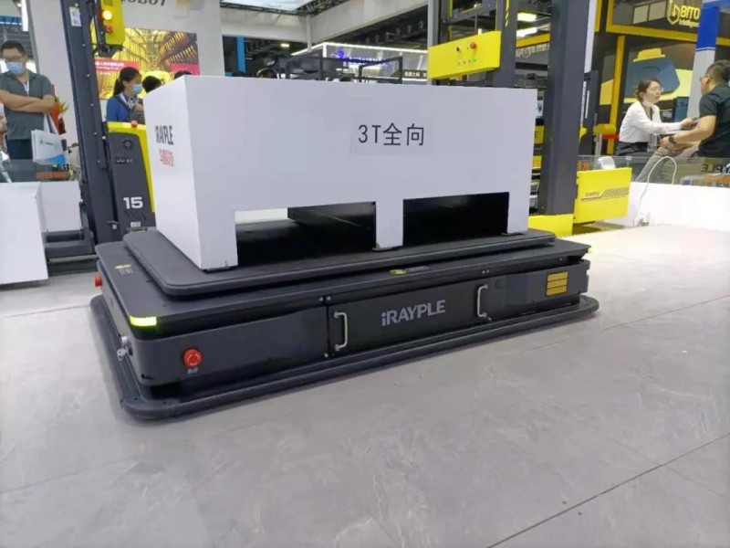 華睿科技帶來的新品——重載型AGV可全向移動,負載達3T。