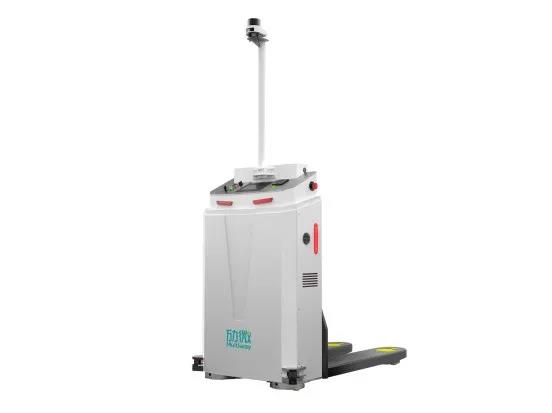 窄通道三向AGV外,在一些不需要高位存儲的場景,AGV廠商們與傳統的叉車廠商合作,通過對車體小型化、輕量化的設計,減小車體的轉彎半徑,推出了窄通道前移堆垛AGV,這類產品的舉升高度一般在1.6m左右,工作通道在2m左右。主要面向線邊運輸、低位上料、倉儲管理等場景應用。