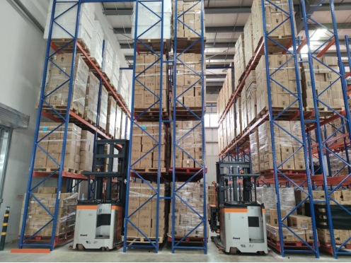 優(yōu)異的性能使得VDA116三向叉車自推出以來就受到了眾多用戶的青睞。某食品配送公司,每天有大量的物料需要進出倉庫,之前都是采用地堆的方式存儲。隨著公司業(yè)務的不斷擴大,原本的存儲方式已經不能滿足他們現(xiàn)有的業(yè)務需求。只有將物料上貨架,在不改變現(xiàn)有倉儲面積的情況下,可以增加庫位。可是如果采用傳統(tǒng)貨架堆垛方式,在庫位的增加上并沒有很大的優(yōu)勢,未來業(yè)務再擴張后,還將面臨儲位不足的問題。客戶多方比較后決定采用卓一的三向堆垛車來改造現(xiàn)在的倉庫。