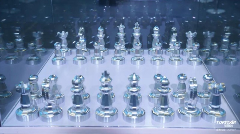 其中,結(jié)合中國博覽會(huì)的國際特色和廣州地標(biāo),還展示了由五軸聯(lián)動(dòng)數(shù)控機(jī)床加工而成的廣州塔小蠻腰和國際象棋金屬模型,凸顯了五軸聯(lián)動(dòng)數(shù)控機(jī)床的高難度異形精密零件加工工藝,讓觀眾眼前一亮。