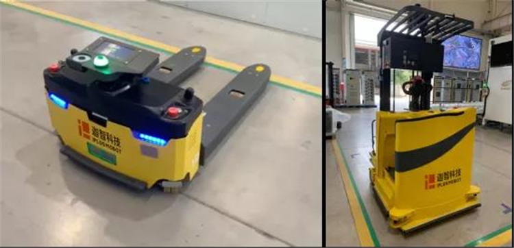 圖:迦智叉車AGV電力設備車間應用
