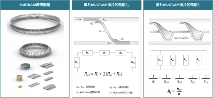 確保大功率充電安全,穩(wěn)定的低接觸電阻是基礎。史陶比爾領先的MULTILAM技術,采用先進的構造設計和特殊成型的彈性連接元件,通過在接觸面之間建立多個平行接觸點,使其具有極低的接觸電阻和出色的電氣與機械性能。