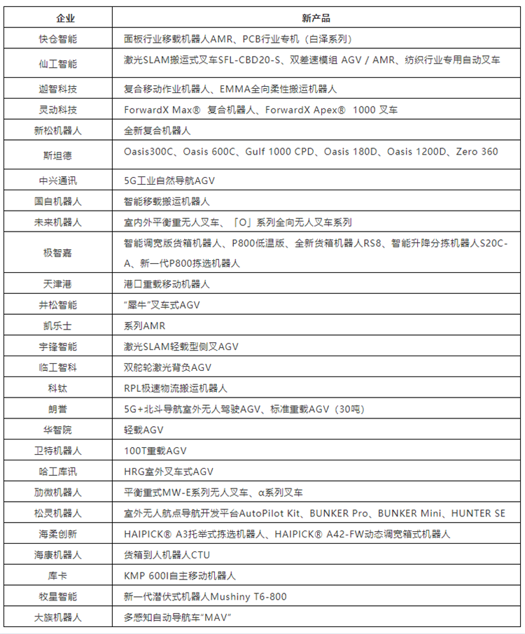 根據(jù)新戰(zhàn)略移動(dòng)機(jī)器人產(chǎn)業(yè)研究所不完全統(tǒng)計(jì),2021年,行業(yè)先后有27家企業(yè)推出了47款新產(chǎn)品,包括叉車(chē)、自然導(dǎo)航AGV、重載AGV、移動(dòng)底盤(pán)以及各類(lèi)行業(yè)專(zhuān)機(jī)等。