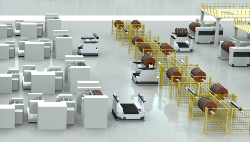 國內(nèi)某鋰電池制造龍頭企業(yè)在前工序車間引入30臺極智嘉雙舉升機器人,實現(xiàn)涂布、輥壓、模切等工序3噸重物料的自動搬運。