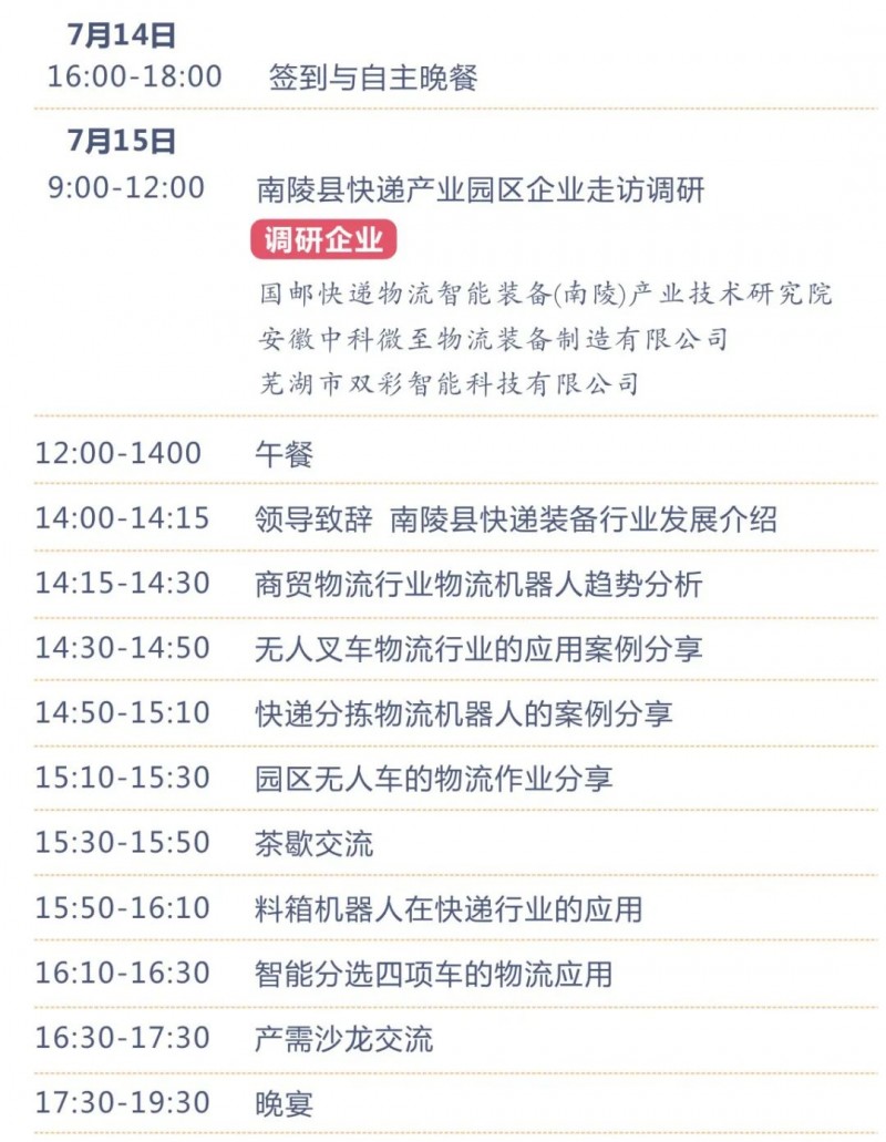 為了深入快遞物流行業(yè)智能分揀、智能倉儲及園區(qū)物流等多環(huán)節(jié)對于工業(yè)移動機器人(AGV/AMR)的需求調(diào)研,也為了推動AGV/AMR在快遞行業(yè)細分應用市場的產(chǎn)需交流,7月15日,CMR產(chǎn)業(yè)聯(lián)盟特別組織“南陵縣·智慧物流裝備與倉儲智能化”主題沙龍活動,邀請產(chǎn)業(yè)鏈企業(yè)共聚南陵,參觀走訪。